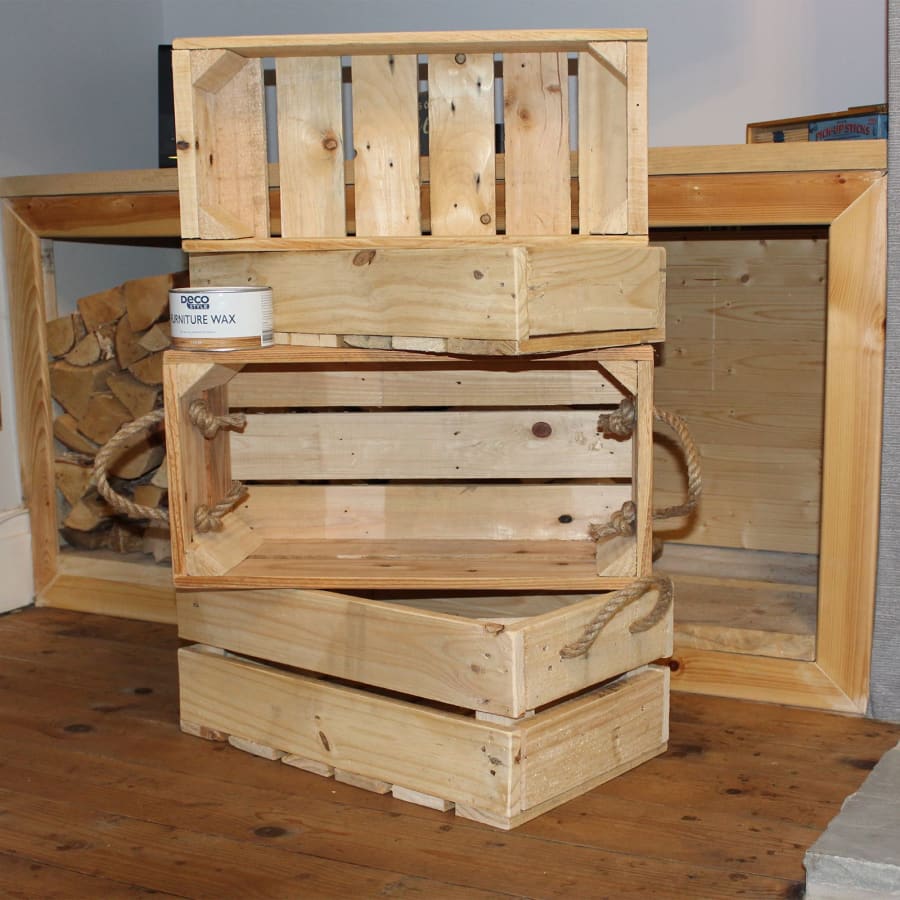 These crates are ideal for venue dressing the crates are finished with wax and fitted with rope handles.