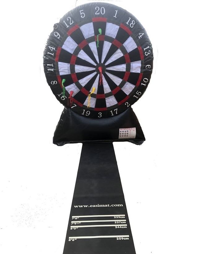 Step up to the oche and play this giant version of a pub favourite. Throw the oversized Velcro Darts at the huge 8ft Inflatable Dart Board. Play a variety of games including highest score, around the clock and 501 to name just a few.