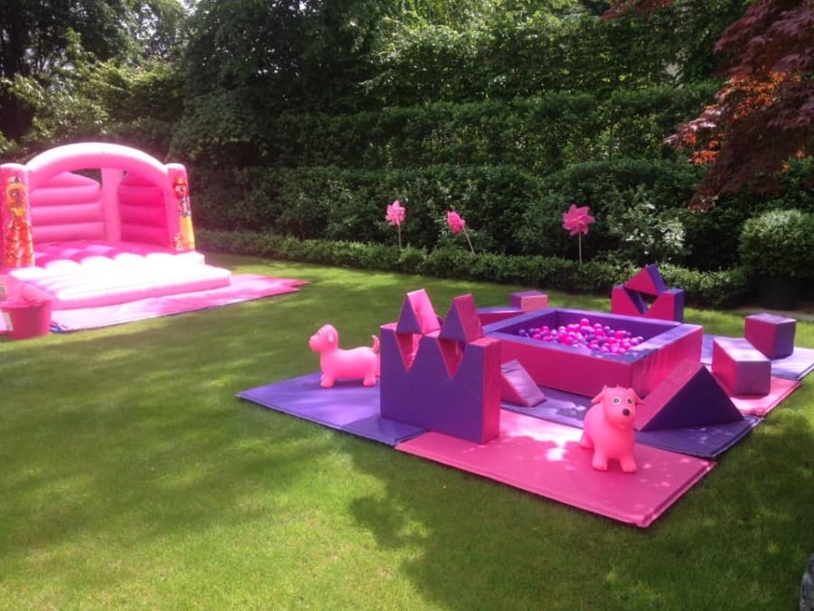 Combining our Mini pink soft play and tiny tots bouncy castle this package is a fantastic combination for any little girls Birthday party or christening celebration.